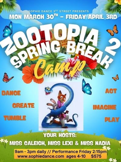 - Campers will watch the movie, Zootopia 2 in 30 minute increments daily. Campers who are not allowed to watch the movie or are not comfortable watching a movie with their camp teachers and campmates will need to be picked up by 1pm each day.